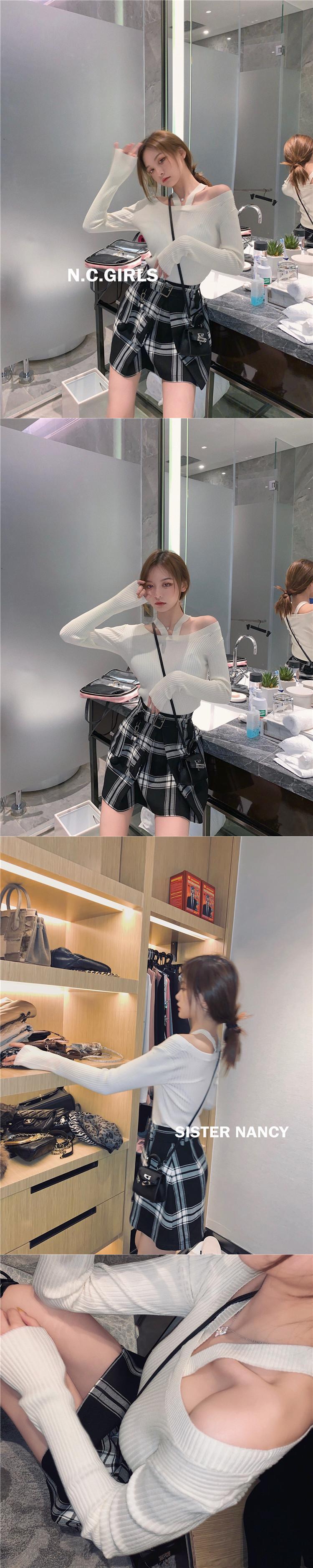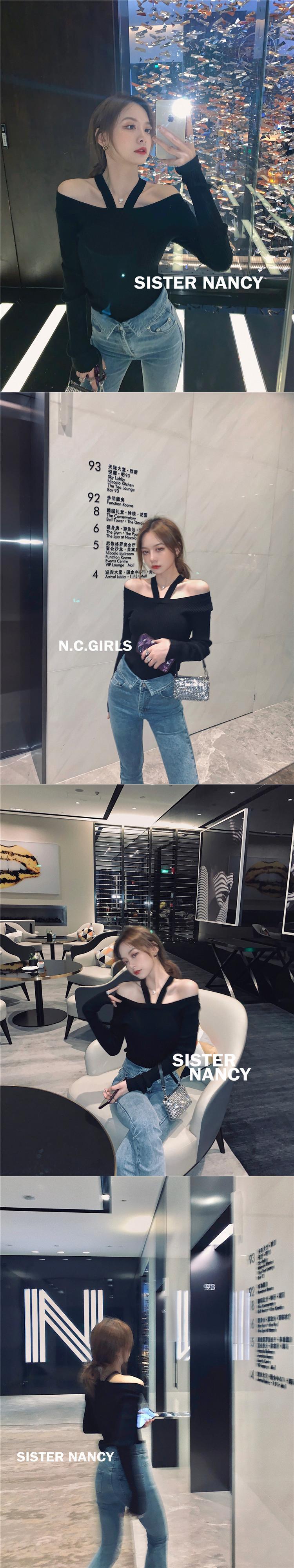 南西姉妹オフショルダーニットボトミングシャツ女性2021新しいスリムで薄いファッションオールマッチワンショルダートップ s2812171997026461