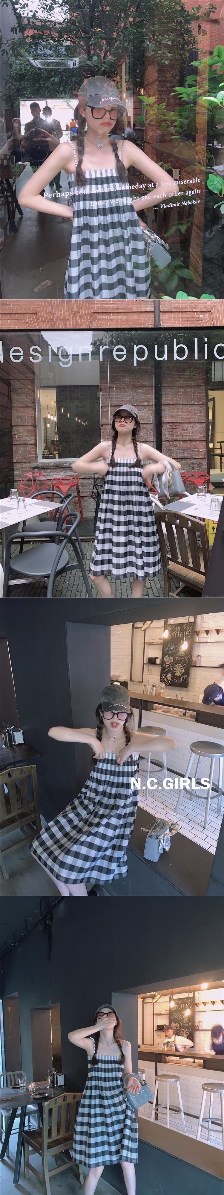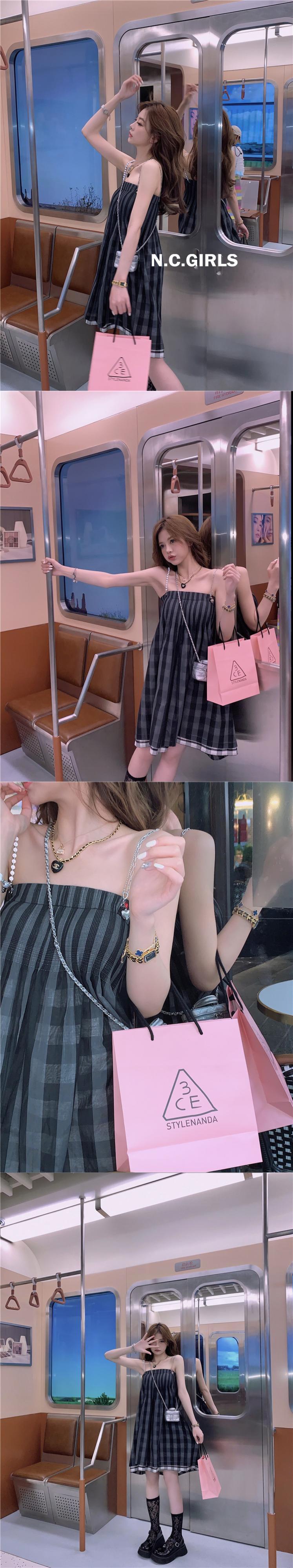 姉妹南西の両サイドの小さなデザインセンスは、2021年夏の新しいウエストサスペンダースカートのチューブトップチェック柄ドレスを着用しています s2812193437479741