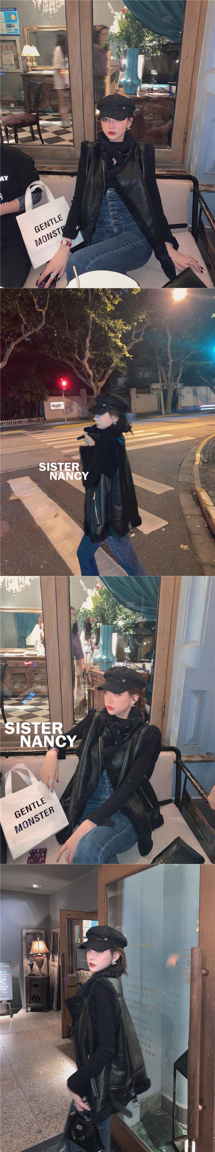 NanXiの姉妹毛皮1つのオートバイの革のジャケット女性の秋と冬2021新しいファッションルーズスタンドアップカラーベスト s2812125591558030