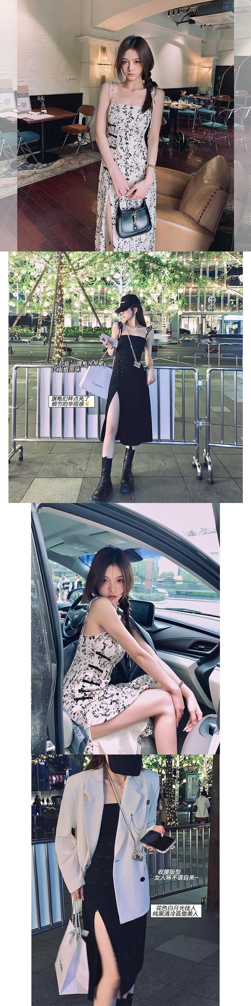 南西姉妹夏新作ドレス女性2021年ロングオーバーザニーファッション気質ホルターネックチャイナスカート s281218898059204