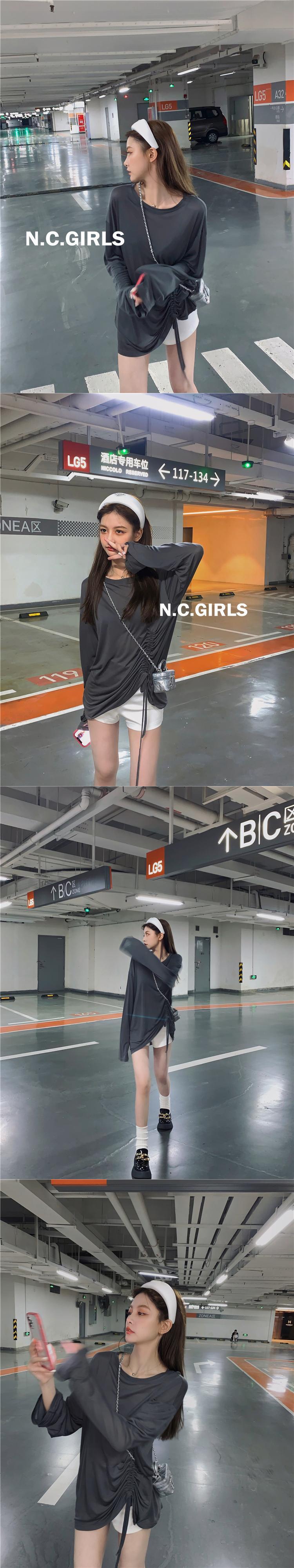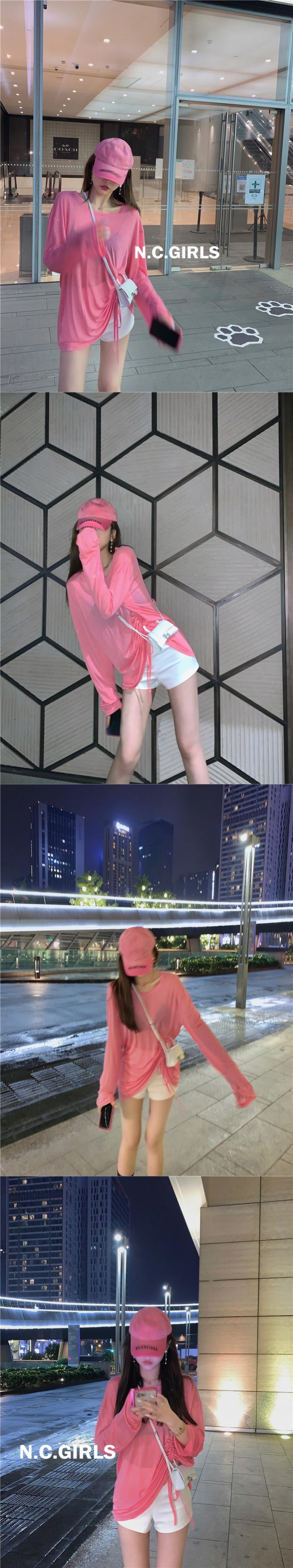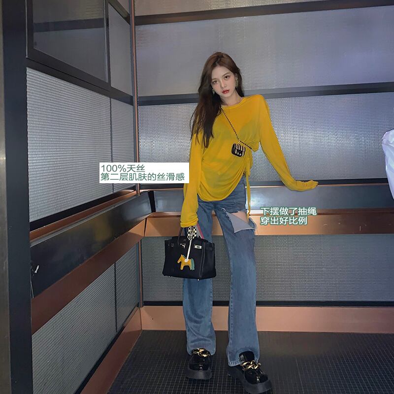姉妹南西長袖日焼け止めTシャツ女性の夏の薄いフェイスマスク巾着不規則なデザインのニッチなトップスの感覚 s2812187349108187