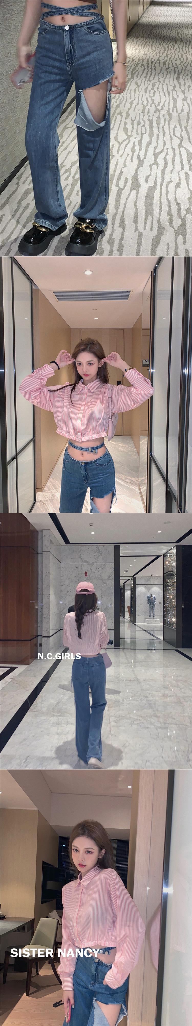 Nanxi姉妹はジーンズの女性の夏の薄いセクションをまっすぐに緩くて薄い2021年の新しいワイドレッグモップパンツを破りました s2812111083533233