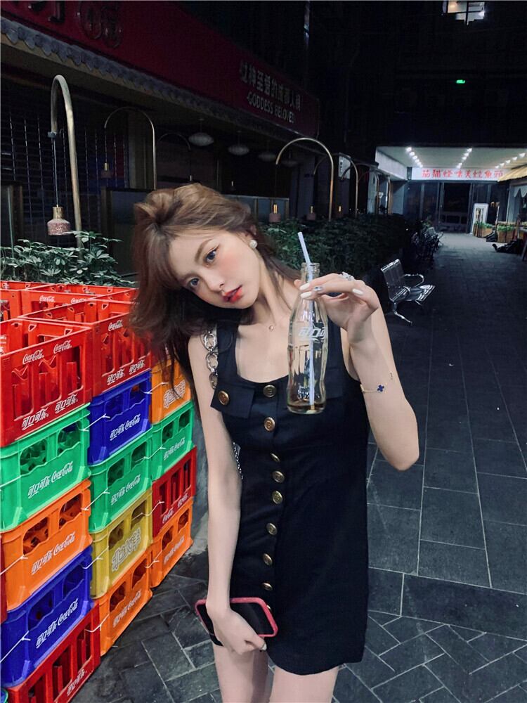 南西姉妹黒ストラップドレスニッチデザインセンス夏薄セクション2021新しいウエストストラップドレス s2812113970348917