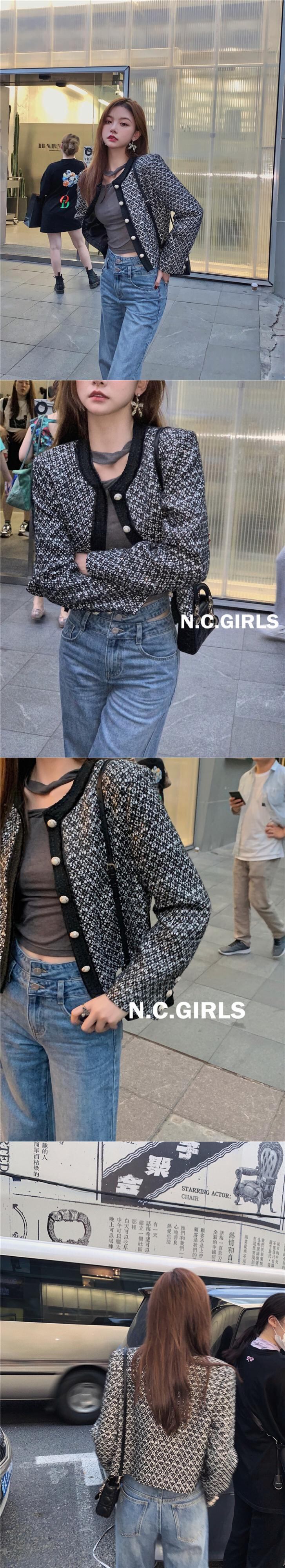 南西姉妹カスタム黒と白のツイード小さな香りのショートコート女性2021年秋新しいオールマッチコート s2812151570386925