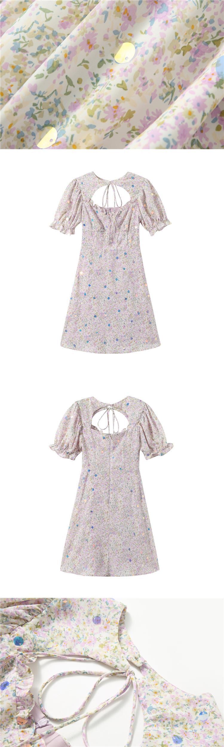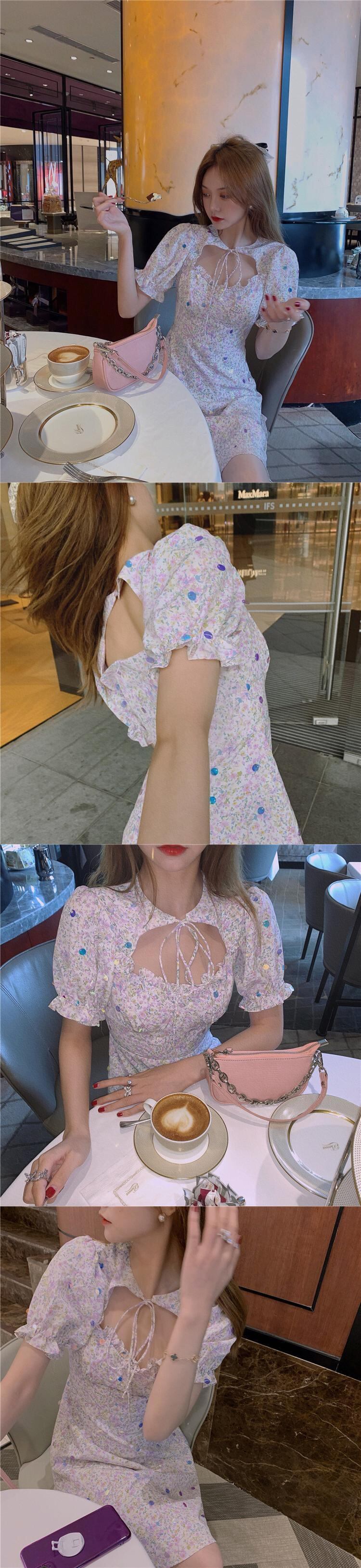 南西姉妹カスタムスモールフローラルドレス女性夏ミドル丈スタイルウエスト優しい風スクエアネックパフスリーブスカート s2812173335806706
