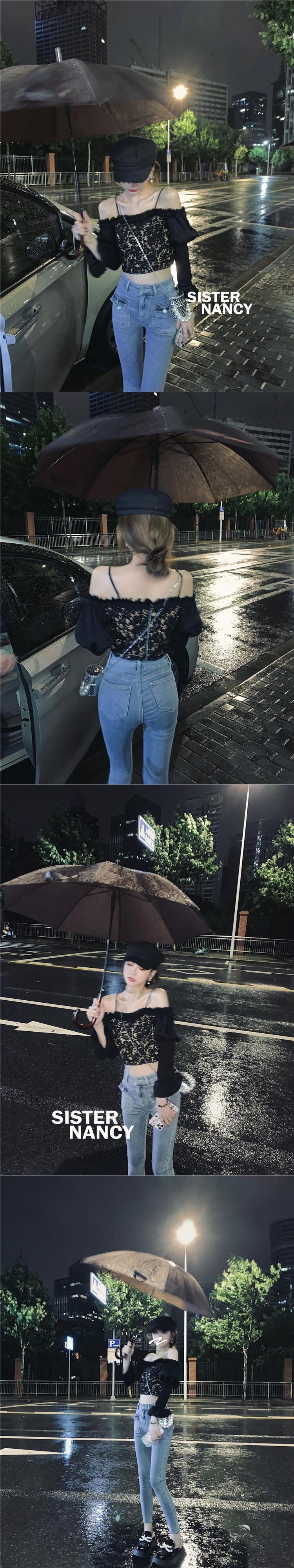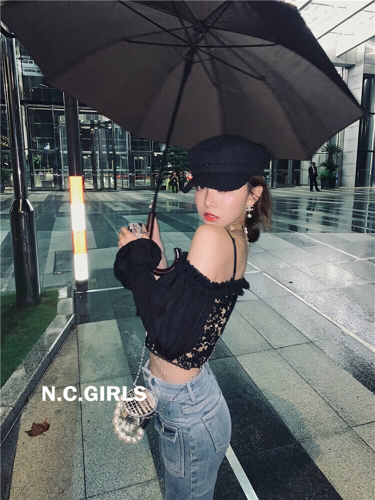 南西の妹のワンショルダーレースTシャツは2021年秋、新しいデザインセンスは薄くて気質のあるブラウス女性 s2812171879858124