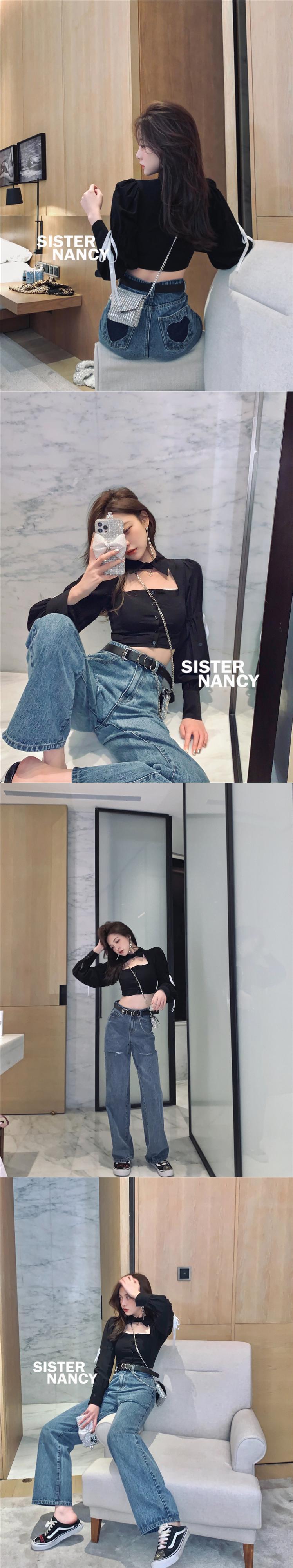 シスターナンシーのネックラインは、ショートシャツの女性の2021年春の新しいデザインセンスニッチセクシートップをくり抜いた s2812154545026367