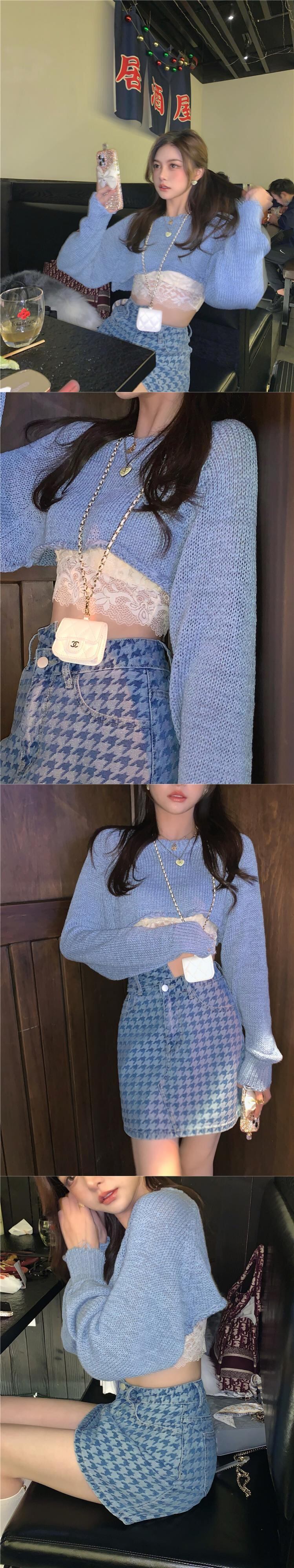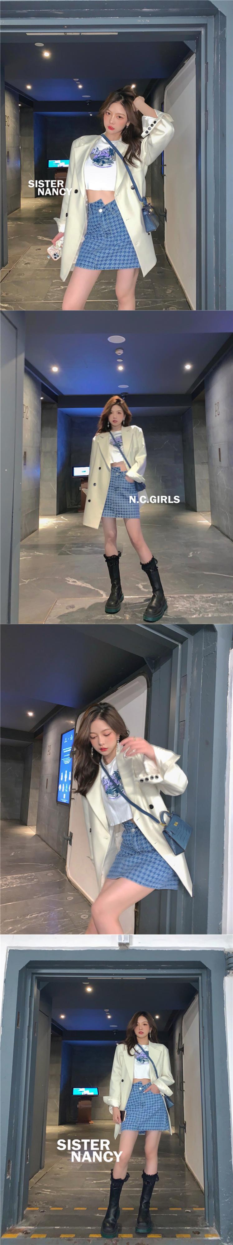 南西姉妹千鳥格子デニムスーツ女性2021年夏新年齢を減らす気質ファッションハーフレングススカートツーピーススーツ s2812177961958973