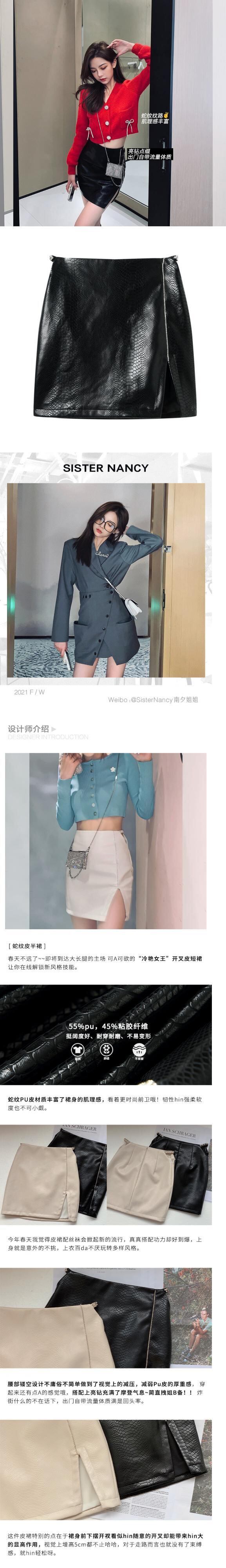 シスターナンシーの華やかなクイーンスネークプリントレザースカート女性の春と夏2021年の新しいハイウエストバッグヒップAラインスカート s2812195912607673