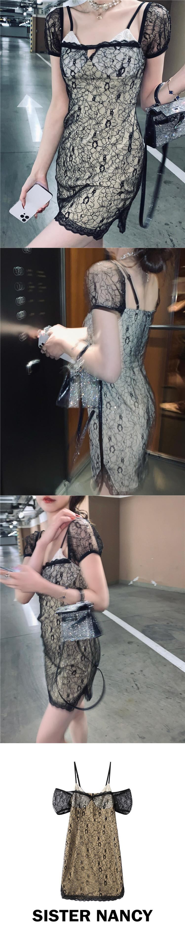 NanXiの華やかな見事なカラーマッチングレースドレス2021夏の新しいデザインセンスニッチサスペンダースカート s2812137645821666
