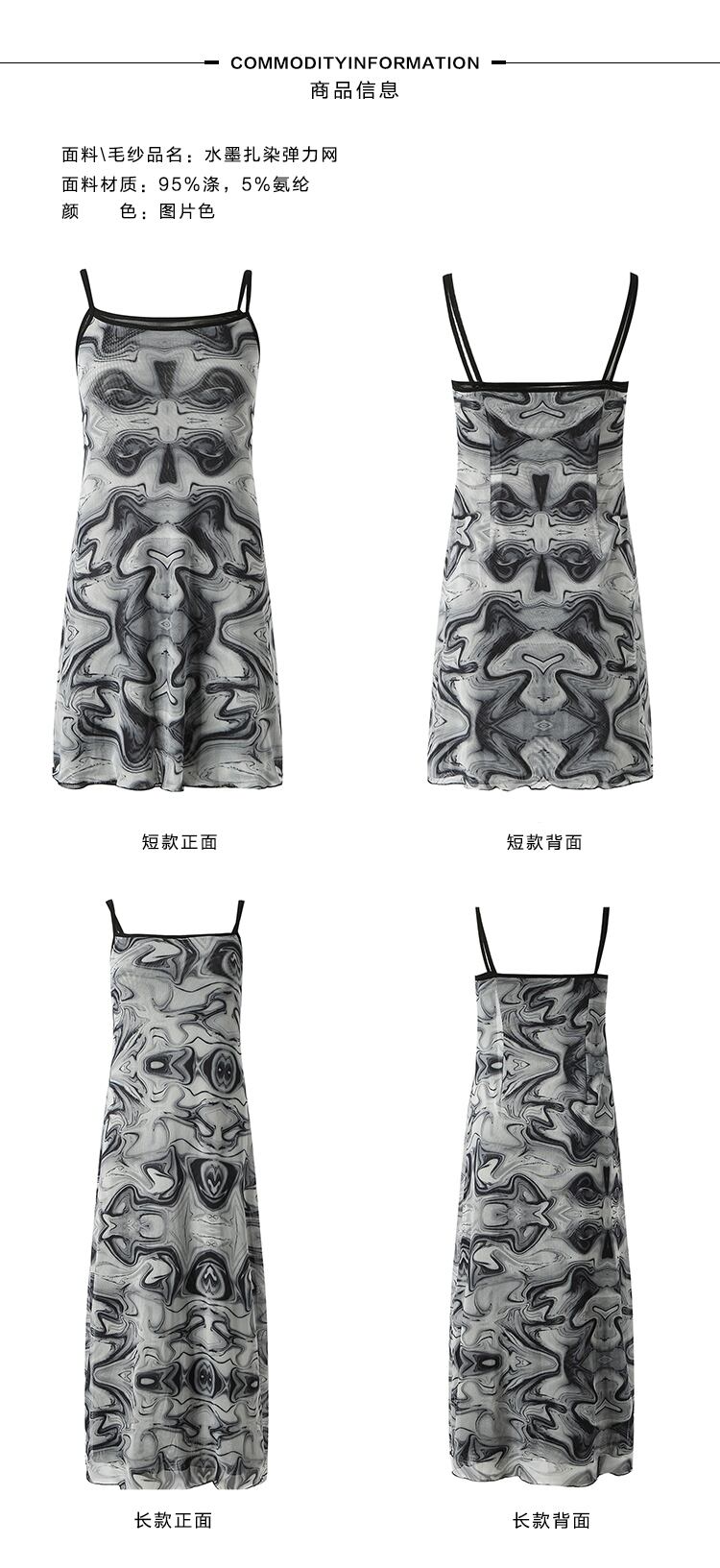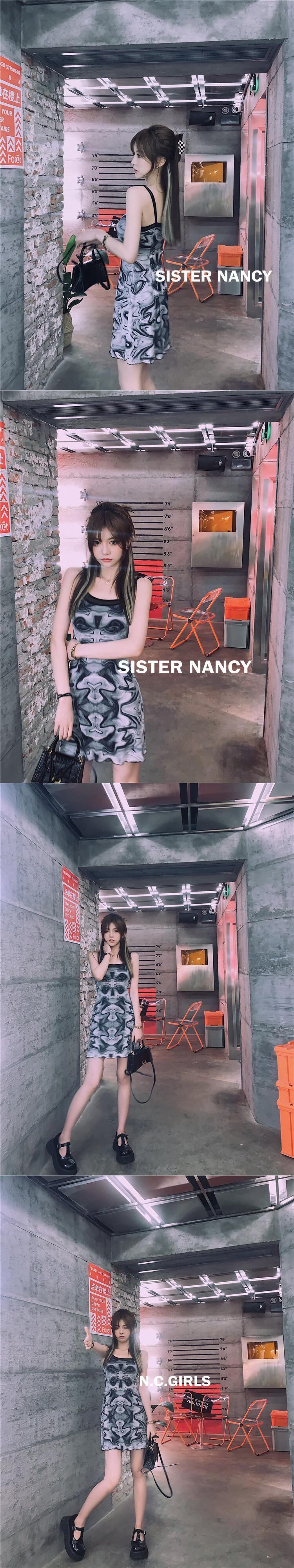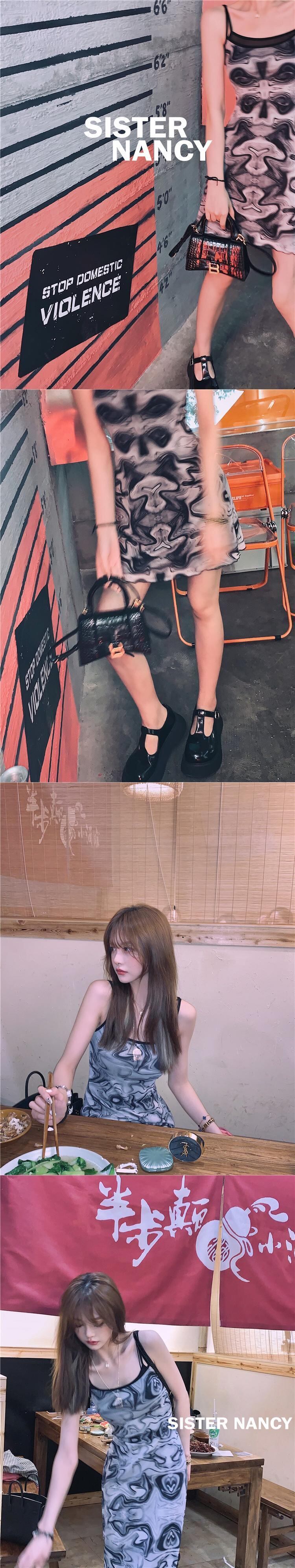 シスターナンシーの水墨画ミディアムレングスサスペンダースカート女性2021年夏新しいウエストスリムノースリーブドレス s2812179787270756