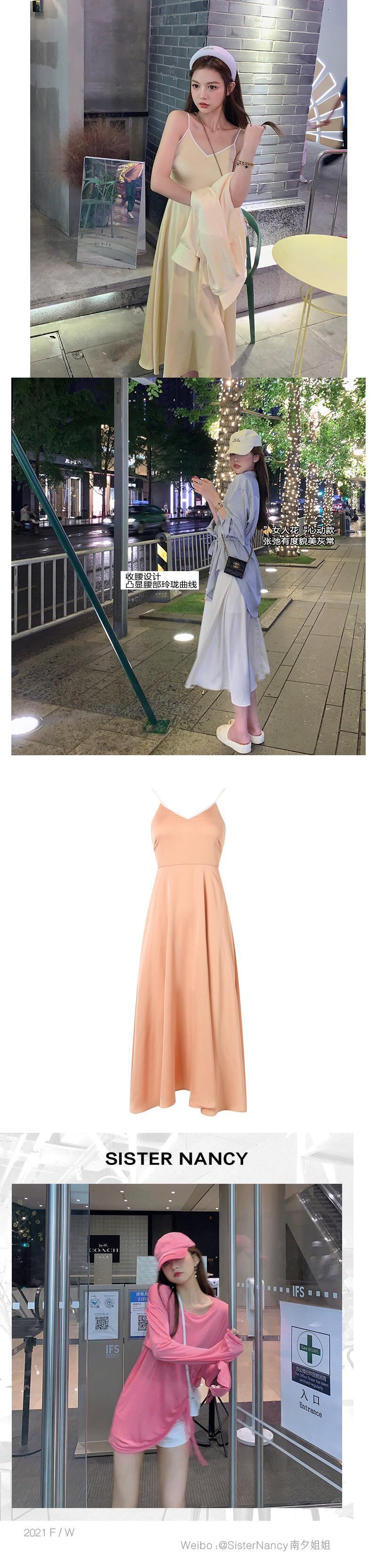 姉妹南西サテンサスペンダードレス2021年夏新しいVネックミドル丈スカート高品質気質スカート s2812142016194740