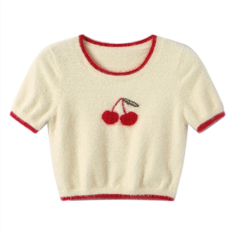 南西姉妹カスタム半袖ラウンドネックプルオーバーセーター女性2021年秋新しいショートニットセータートップ s2812119143225792