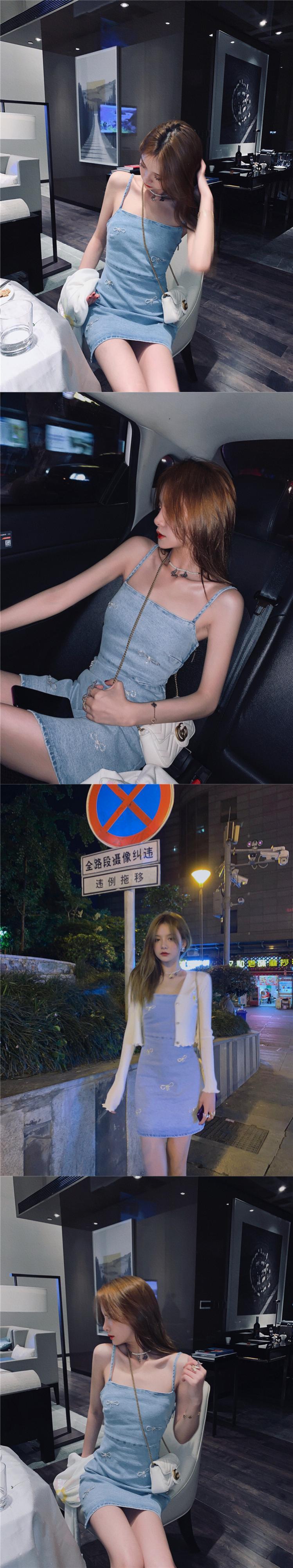 南西姉妹ワンショルダーストラップドレス2021年新夏セクシースリムスリミングバッグヒップデニムストラップドレス s2812132594941462