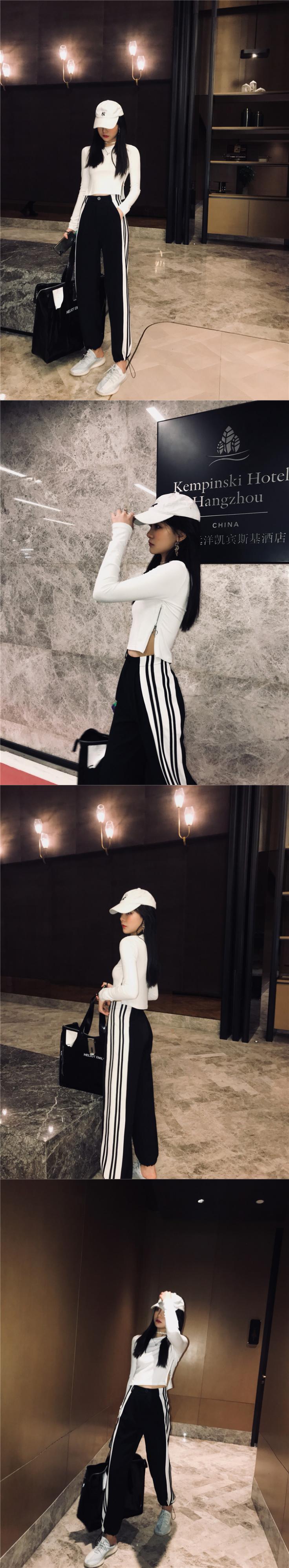 シスターナンシーのワイドレッグパンツレディースハイウエストドレープは薄く、オールマッチの黒と白のストライプスリットルーズストレートレッグストラップスポーツパンツ s2812176213513999