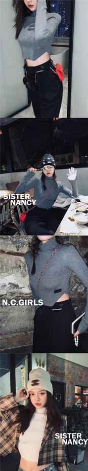 南西姉妹の生命を脅かす小さな妖精ニットトップ女性の2021年春の新しいオールマッチハイネックセクシーボトミングシャツ s2812131497900740