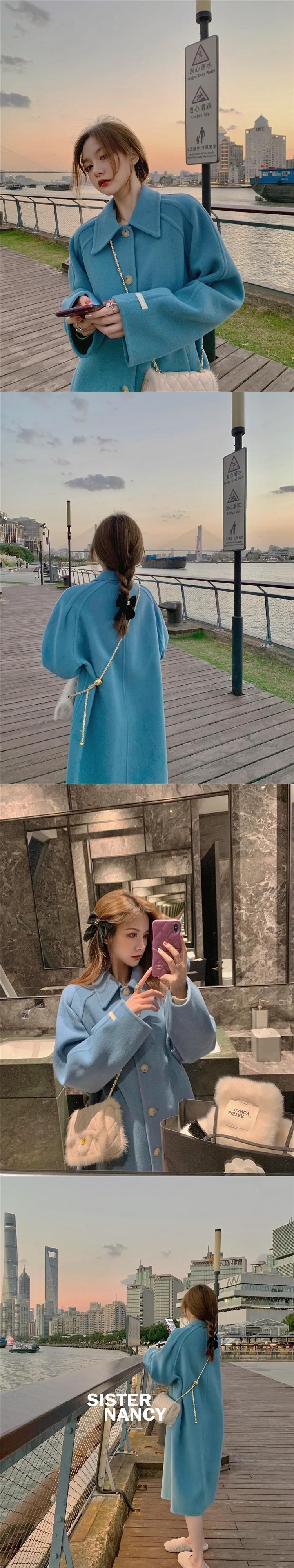 南西姉妹両面ウールコートレディースミッドレングス2021年冬の新しいハイエンド気質ウールウールコート s2812175499310328