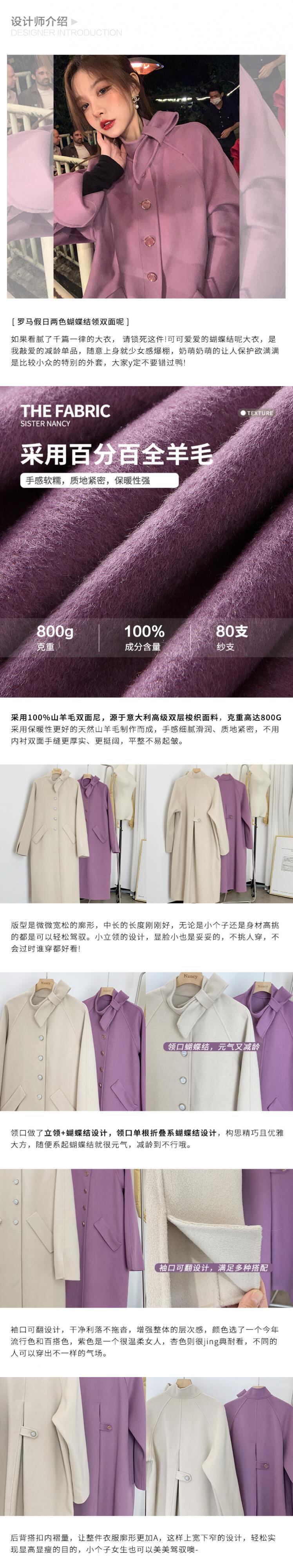 南西姉妹両面ウールコート女性2021年冬新しいルーズウールミドル丈コート s2812187276817905