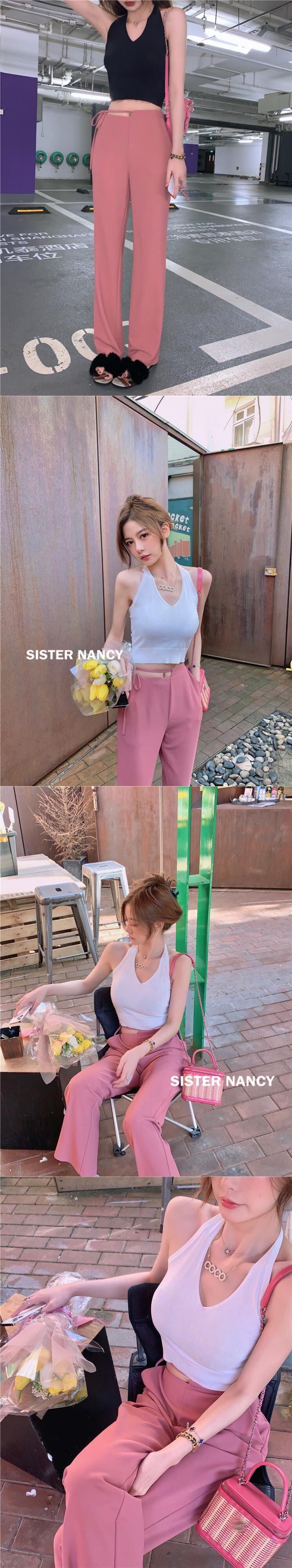南西姉妹ワイドレッグパンツ女性夏薄めセクションハイウエストドレープローズカジュアルストレートスーツパンツピンクモップパンツ s281218238341907