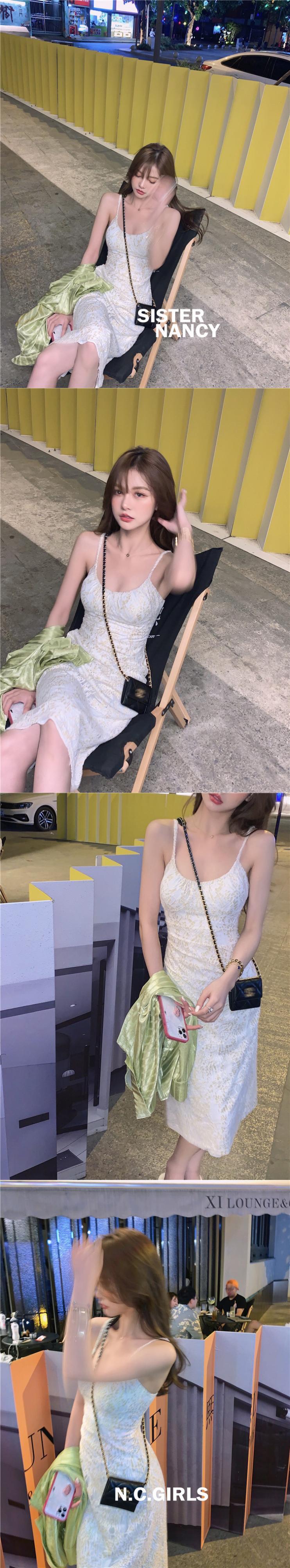 NanXi姉妹パフスリーブレースウエスト薄い甘いドレス2021年夏の新しいプリンセスサスペンダースカート s2812179272101505