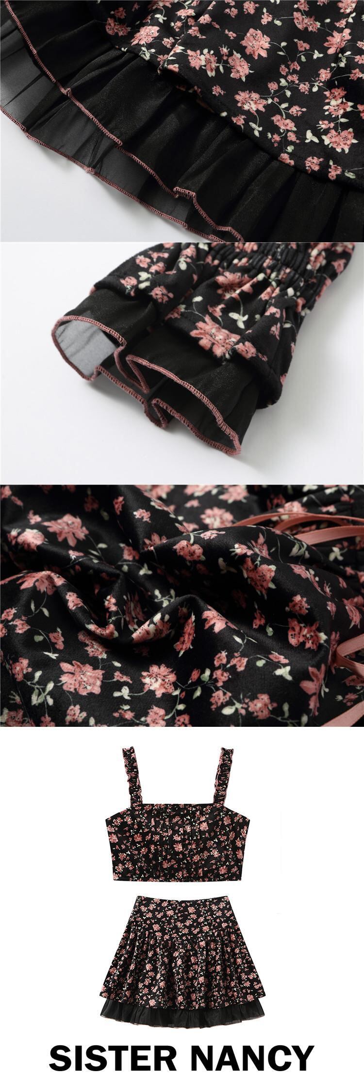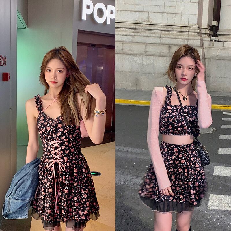 南西姉妹カスタムベルベットローズスーツ女性2021年初秋新気質プリント長袖サスペンダードレス s2812186890615228
