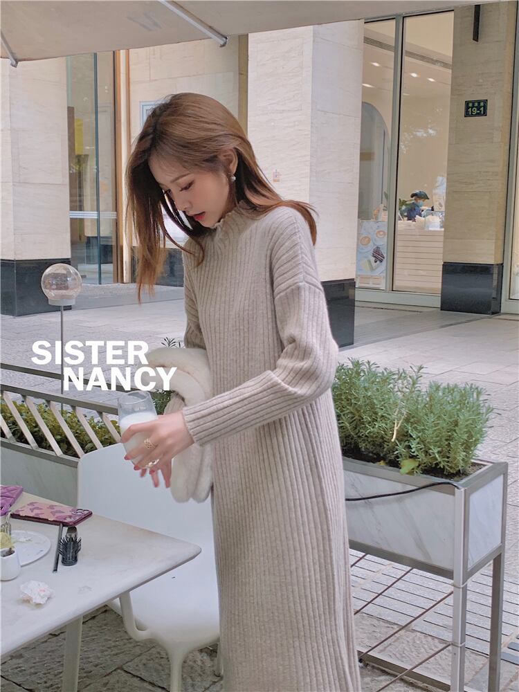 南西姉妹ニットボトミングドレス女性2021年初春新作オールマッチシンナーウールロングスカート s2812166998844599