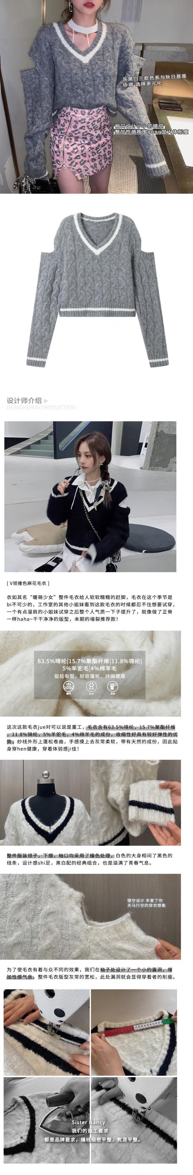 姉妹南西プルオーバーセーター女性緩い長袖アウターウェア長袖2021年秋の新しいショートカットVネックセーター s2812132385099714