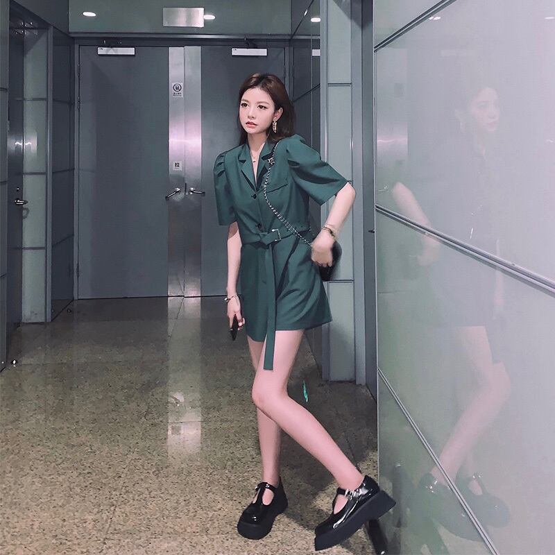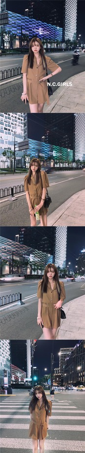 南西姉妹デザインセンスラペル半袖ジャンプスーツ女性夏薄セクション2021新しいスリムワンピースショーツ s2812125305004211