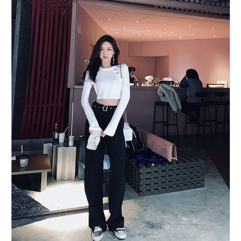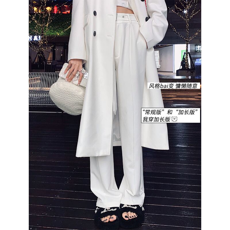 南西姉妹白ワイドレッグパンツ女性2021年新ハイウエストドレープカジュアルルーズ&シンストレートスーツパンツ s2812187313814218
