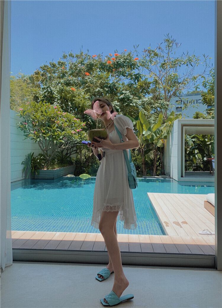 南西姉妹カスタム白いドレス女性2021年夏の新しい半袖パフスリーブスーパーフェアリースカート s2812167049556516