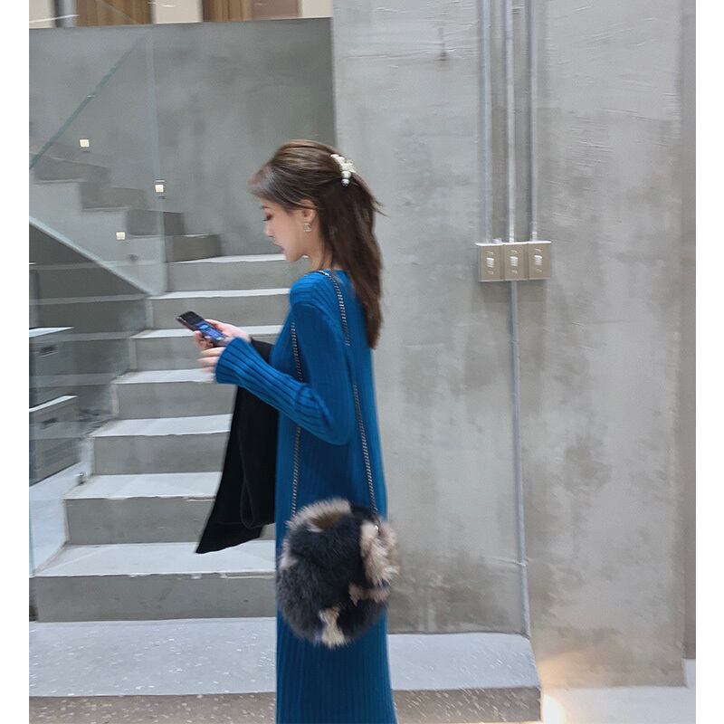 南西姉妹ニットワンピース秋新作女性スリムスリムミドル丈気質Vネックオーバーザニーセータースカート s2812197201201258