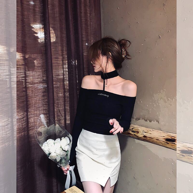 南西姉妹優しいトラップワンネックホルターネックボトミングシャツ女性2021年新しい長袖Tシャツボトミングトップ s2812184154667284