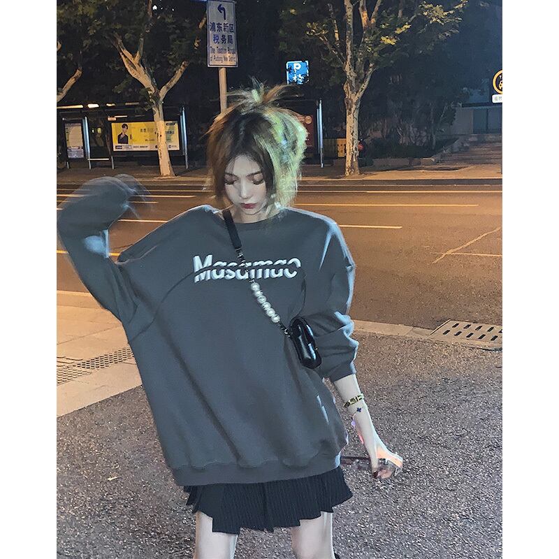 南西姉妹グレー怠惰な風ラウンドネックプルオーバーセーター女性2021年秋新しいルーズBFウィンドジャケット s2812181184502093