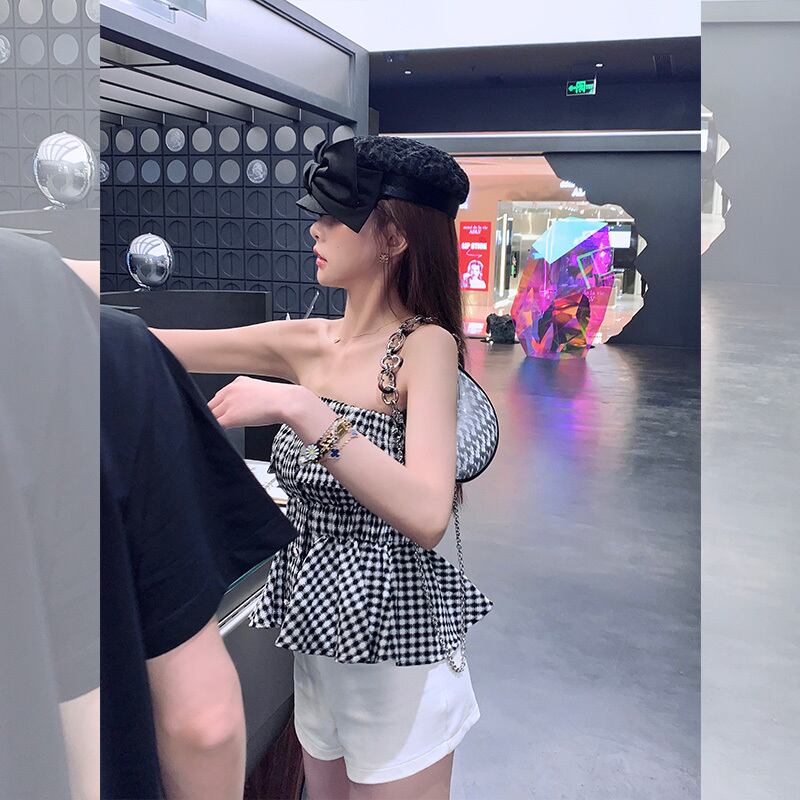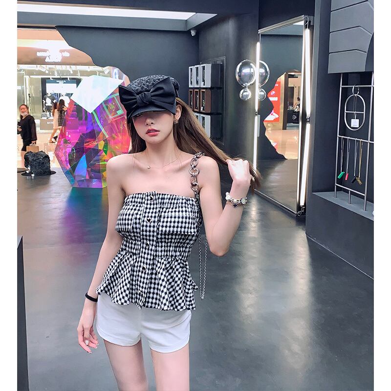 南西姉妹千鳥格子ベスト女性デザインセンスニッチチューブトップ2021年夏新しいアウタージャケットラップチェスト s2812114670260001