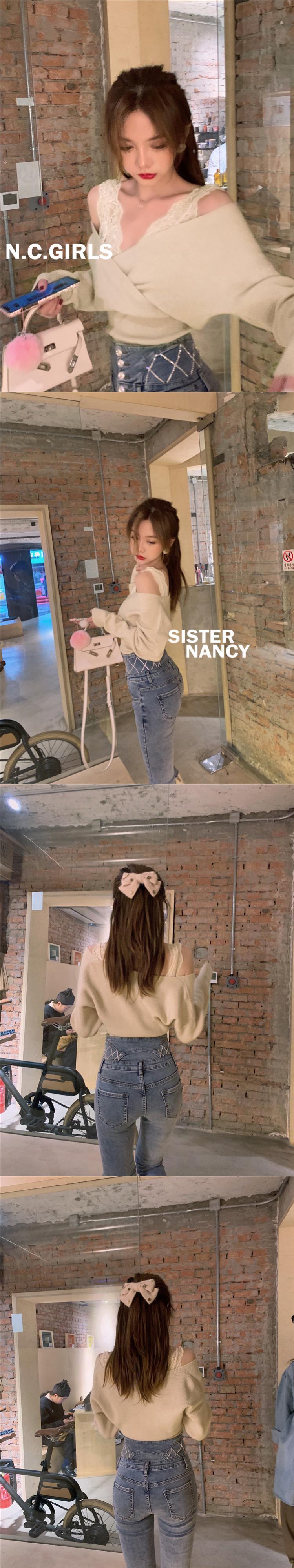 南西姉妹のバラの恋人Vネックセーター女性の冬の新しい柔らかいワックス状のアウターウェア、ウエスタンスタイルの甘いベースコート s2812130150678226