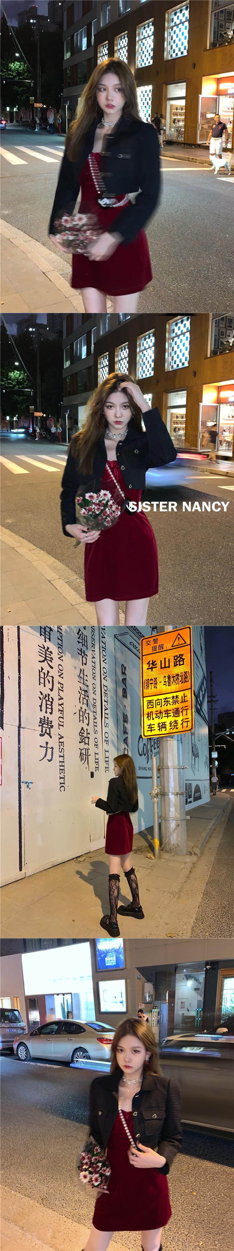 姉妹南西レトロベルベットサスペンダースカート2021初秋新しいノースリーブウエストウエストスリムドレス婦人服 s2812176844955968