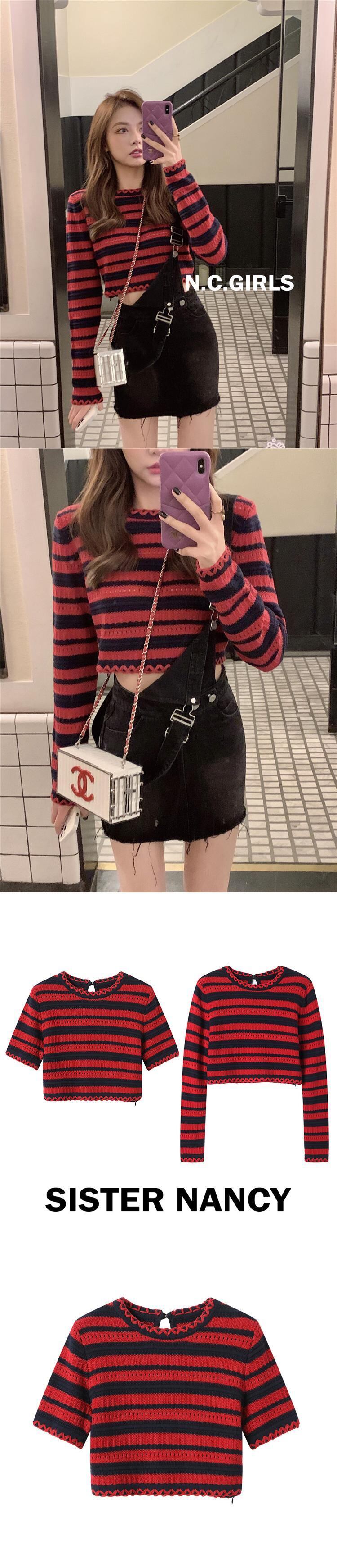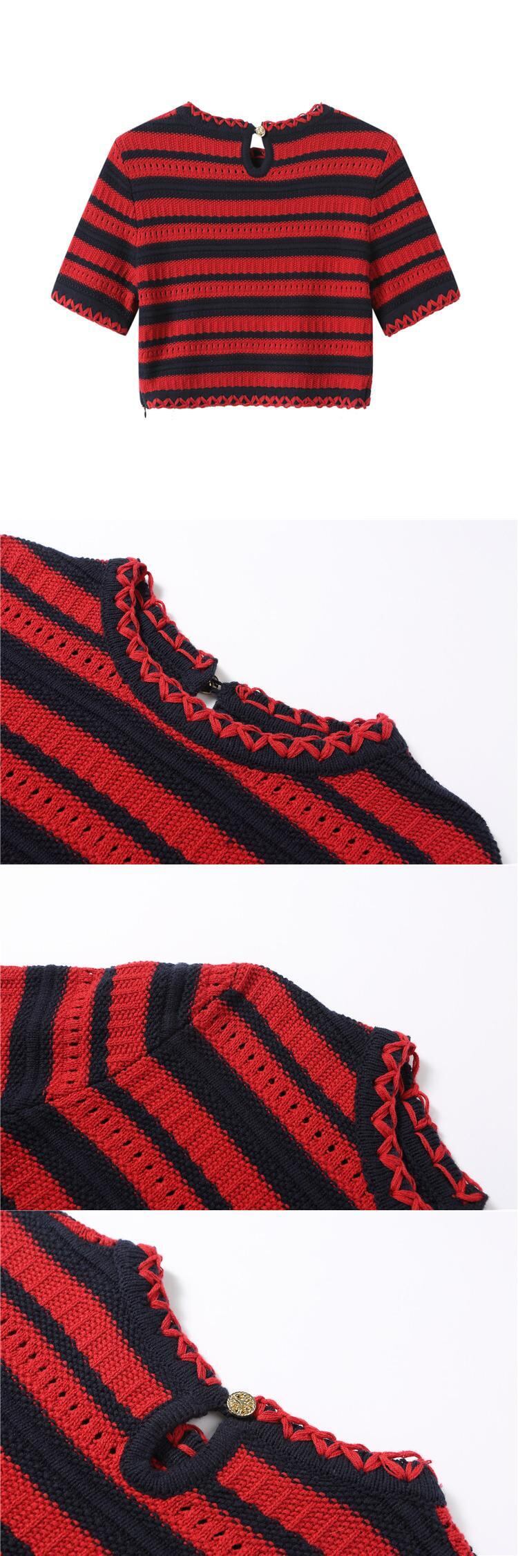 シスター南西レトロヒットカラーストライプセーターTシャツ半袖半袖ショートトップ女性夏薄セクション2021新品 s2812192928641042