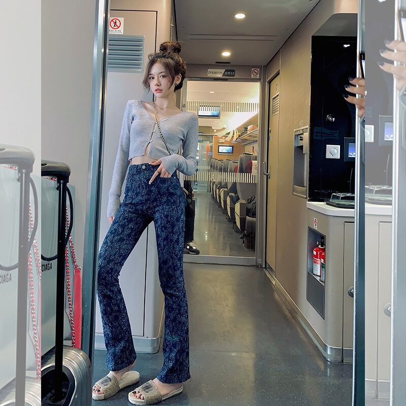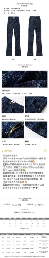 姉妹南西中世プリントブーツカットジーンズ2021年春夏新しいハイウエストのゆったりとしたファッションパンツ s2812130945985214