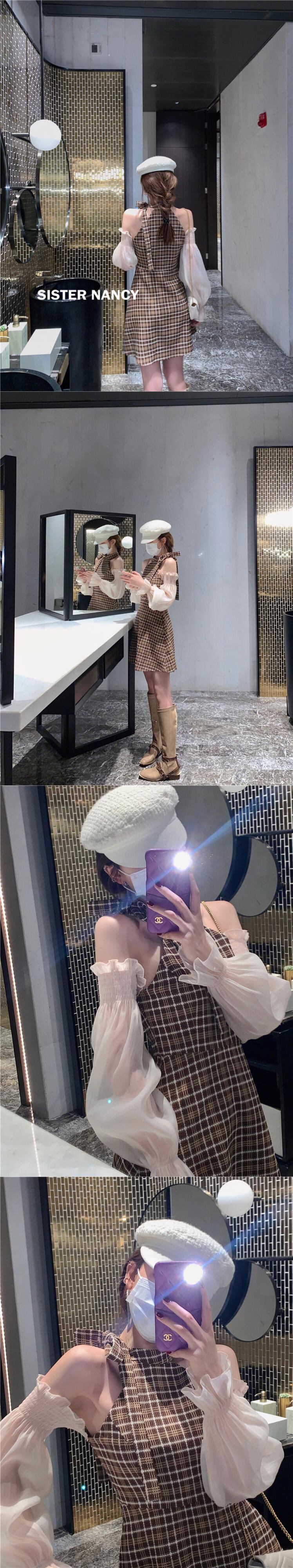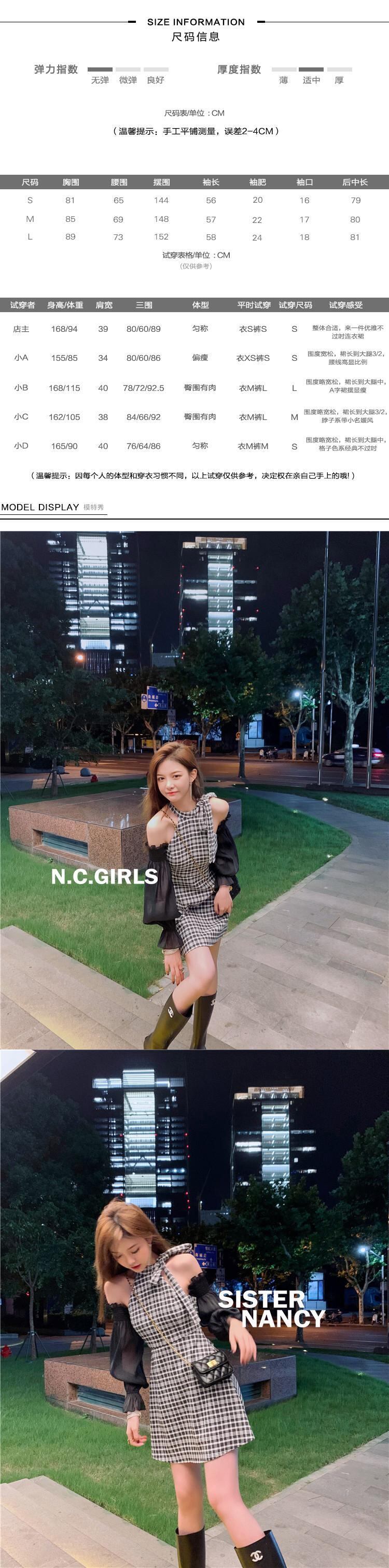 南西姉妹純粋な欲望風メッシュ長袖チェック柄ドレス女性2021年秋新デザインセンスショートスカート s2812192299714208