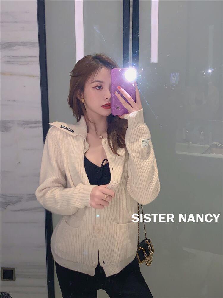 南西姉妹ウールニットカーディガンレディース2021年秋冬新作ワイルドルーズセーターショートトップトレンド s281214472748723