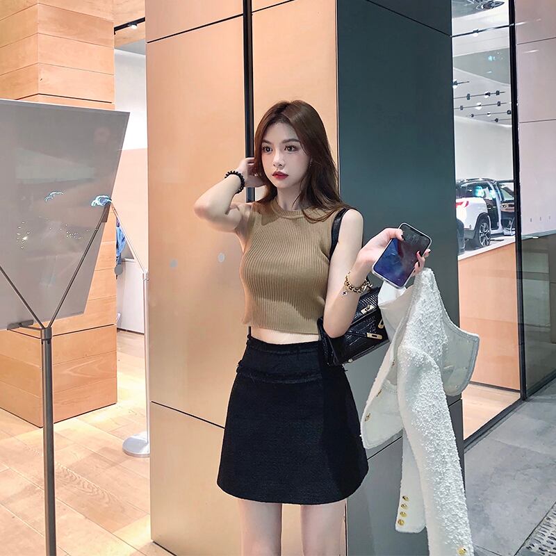 シスターナンシーのラフなエッジの黒いスカート、2021年初秋の女性の新しいハイウエストのaラインファッションスリムショートスカート s2812155730502292
