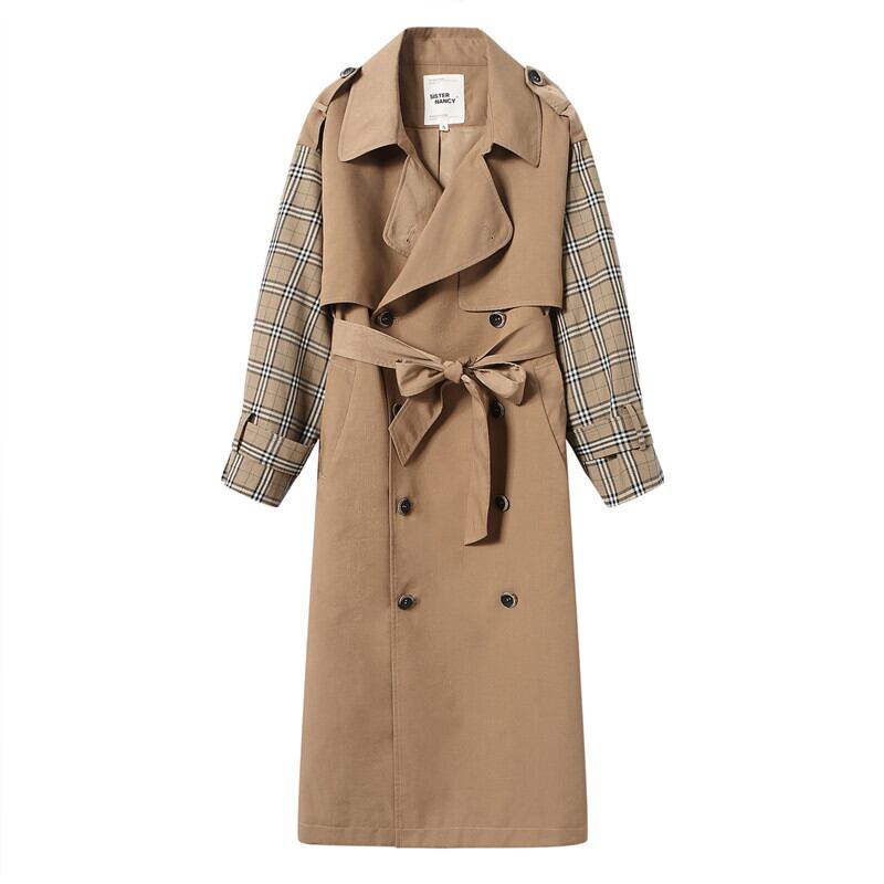 南西姉妹英国スタイルの長いウインドブレーカージャケット女性2021年秋新しいウエスト薄いルーズコート s281218656024884
