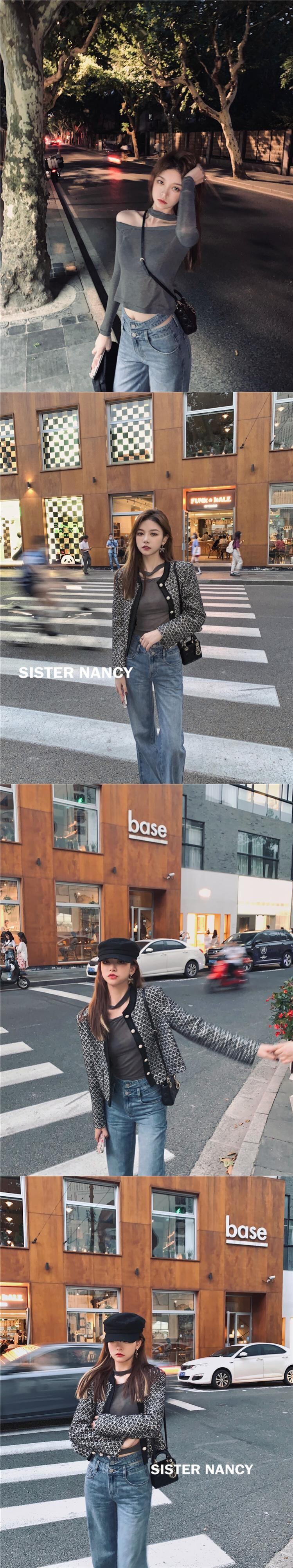 南西姉妹ハイウエストスリミングジーンズ女性の2021年秋新しい小さなルーズストレートワイドレッグパンツ s2812186028424290