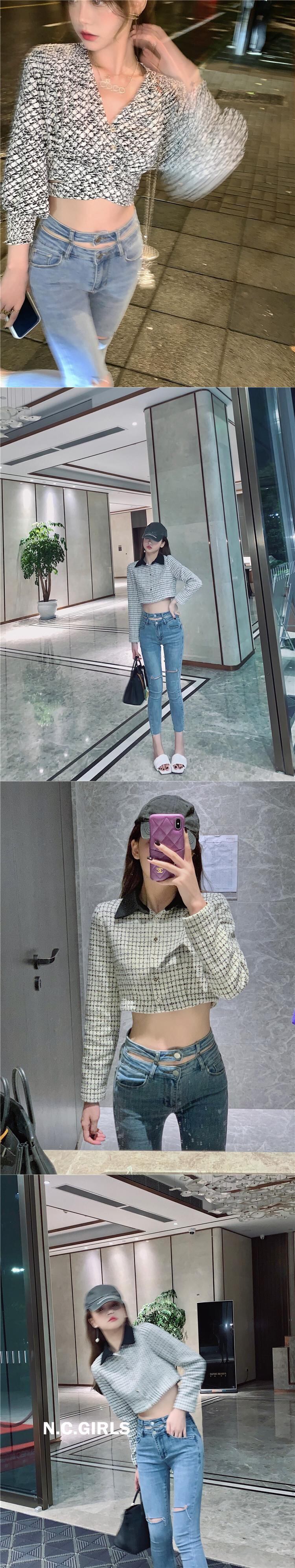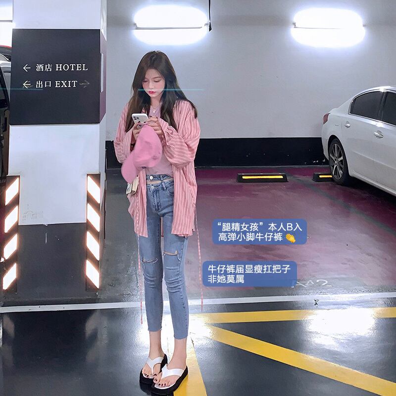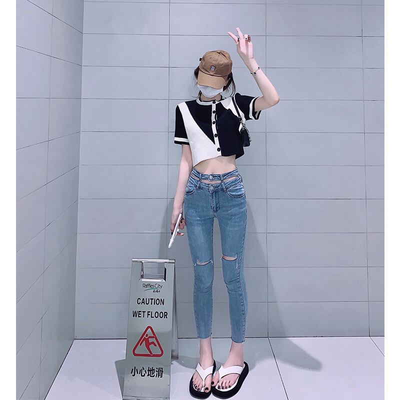 南西姉妹ハイウエスト破れたジーンズ女性夏薄セクション2021新しいスリムストレッチタイトクロップドパンツ s2812119043244408