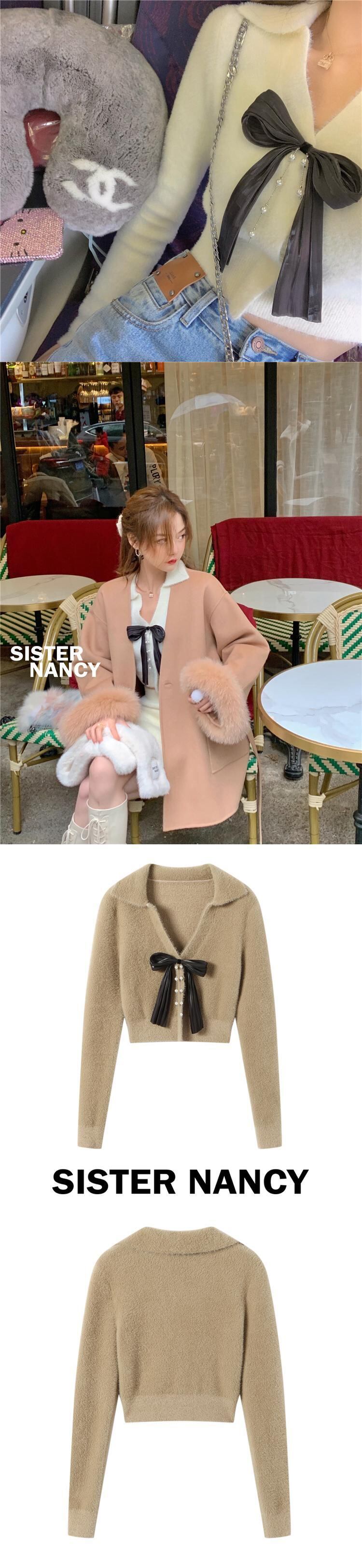 南西姉妹バイリバイティアンVネックニットカーディガン女性の冬2021新しいファッションハイウエストハーフスカートスーツ s2812180846204632