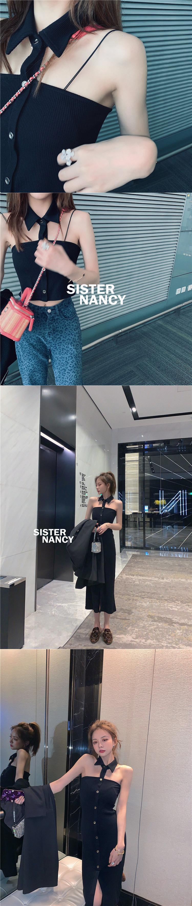 南西姉妹カスタムハンギングネックストラップレスドレス女性2021年秋新しいスリムで薄いセクシーな黒のスカート s2812114336245970