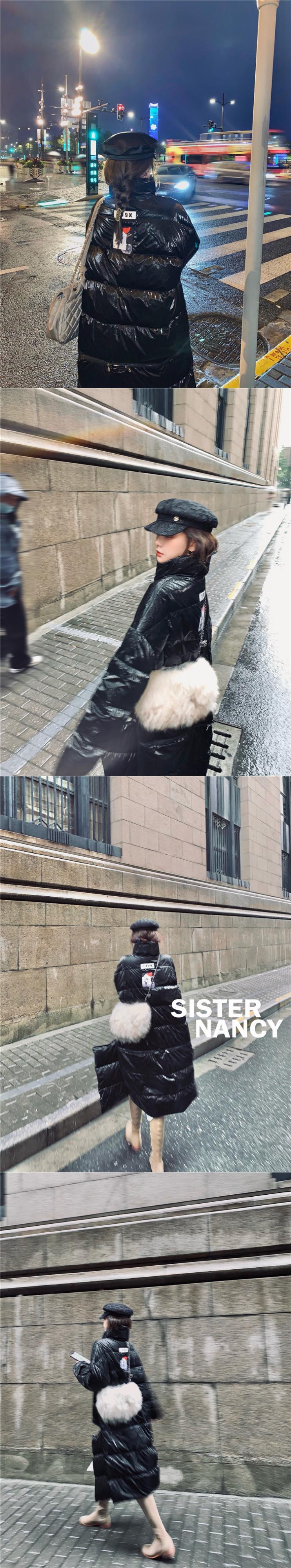 南西姉妹パテントレザーダウンジャケットレディース2020秋冬新作ホワイトダックダウンロングとショート2枚でニーコートの潮流 s281211452731223