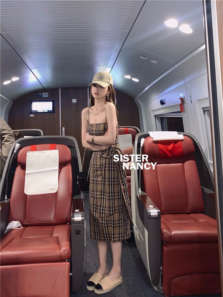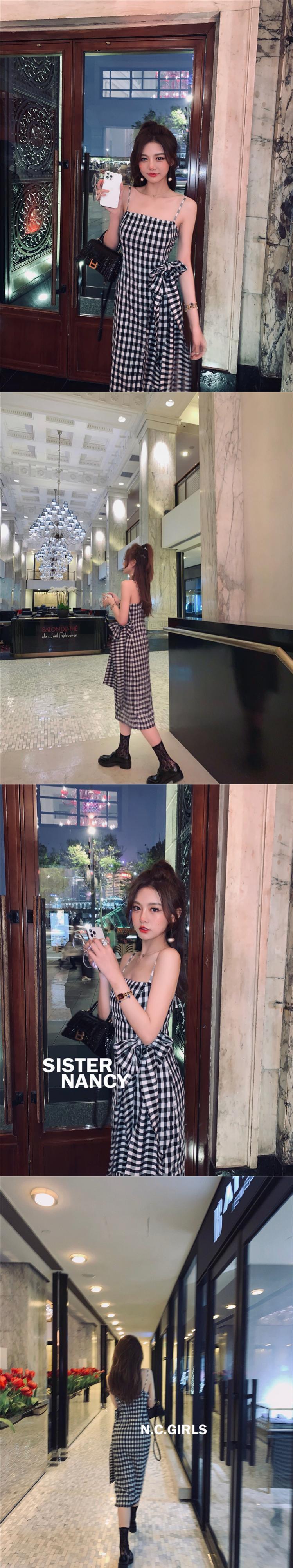 ナンシーの妹チェック柄スリングドレス女性夏分割2021新しいウエスト細い気質ロングスカート潮 s2812177885827546