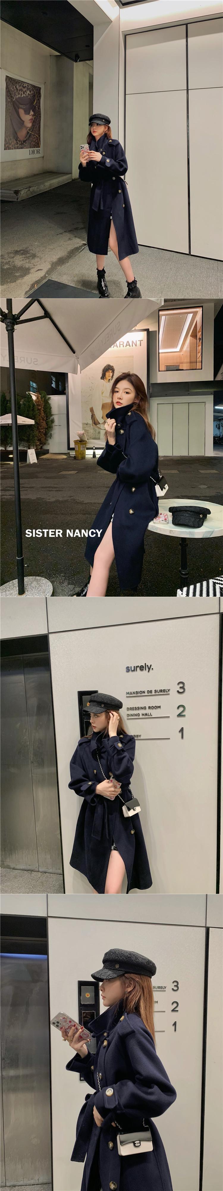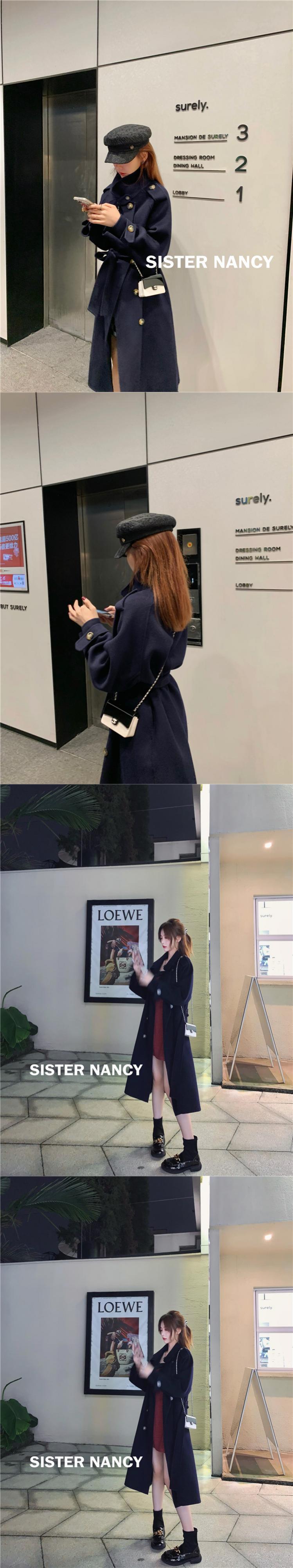 南西姉妹の自作両面カシミヤコート女性の2021年秋冬新作ルーズロングウールコート s2812177290837316
