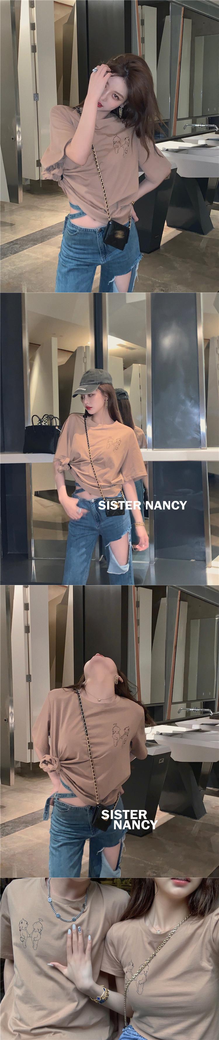 シスターナンシーエドラバーズウェア2021年夏プリントコットンラウンドネック半袖Tシャツハーフスリーブ s281215189214414
